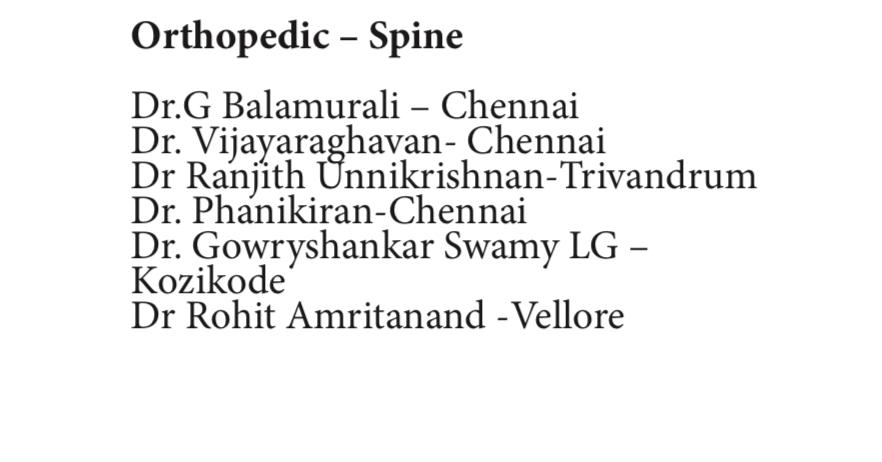 I am N. Sridevi facing spine problem came to Dr. Phanikiran under went D7- transpedicular biopsy D6-D8 posterior fibilistation done Excelent & very good Dr. Phani kiran we are very much thankful to him and taking very care on patent upto date once more I am thanking you sir. "THE BEST DOCTOR FOR SPINE SURGERY"